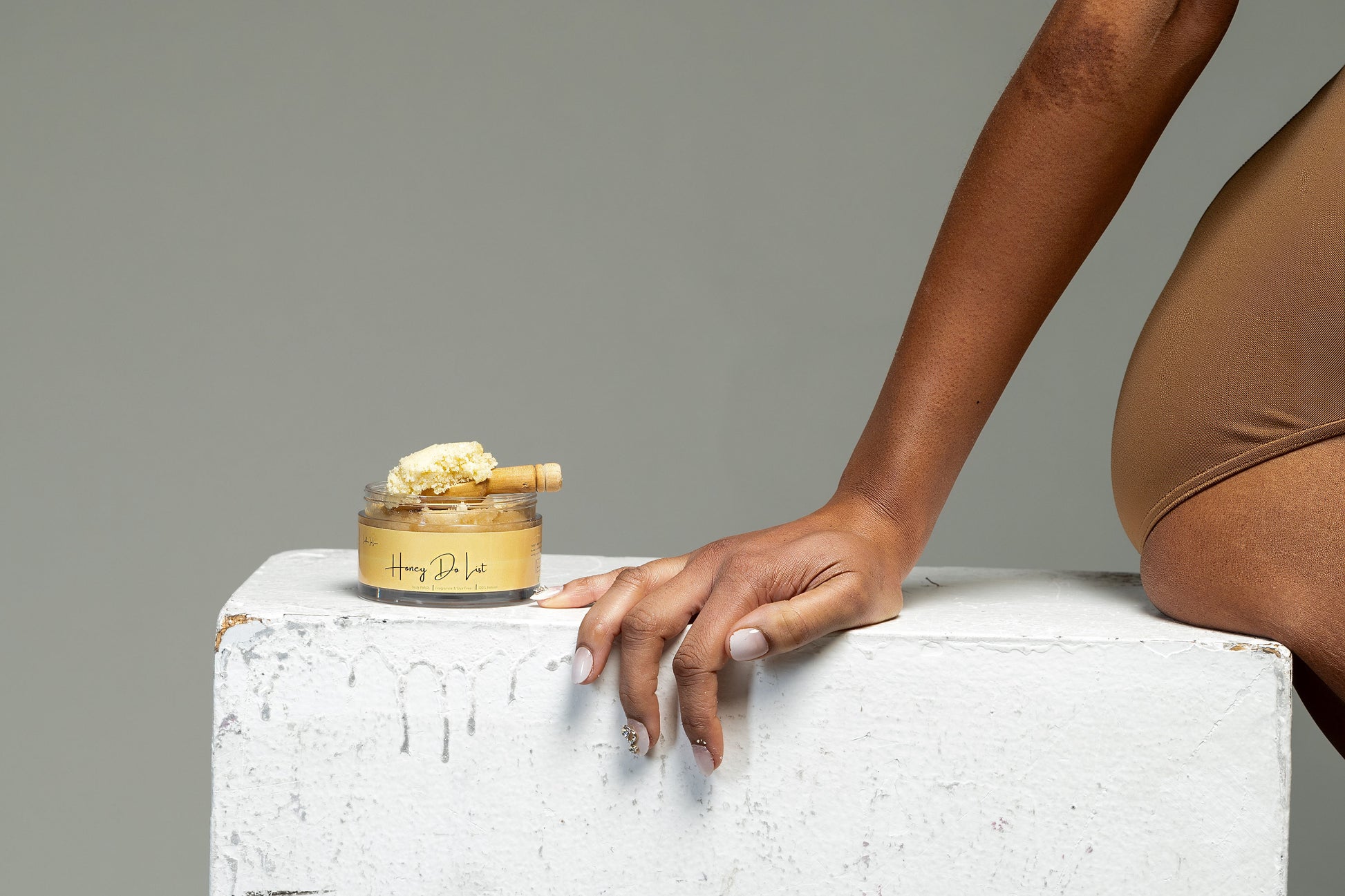 Honey Do List- White Sugar, Brown Sugar, Shea Butter, Foaming Bath Butter, Cocoa Butter, Grapeseed Oil, Safflower Oil, Chamomile & Calendula infused Avocado Oil, Colloidal Oats, Honey Powder & Natural Preservative.