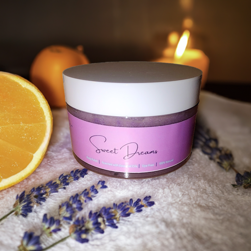 Sweet Dreams- White Sugar, Brown Sugar, Shea Butter, Foaming Bath Butter, Cocoa Butter, Grapeseed Oil, Safflower Oil, Lavender infused Avocado Oil, Essential Oil Blend, & Natural Preservative.