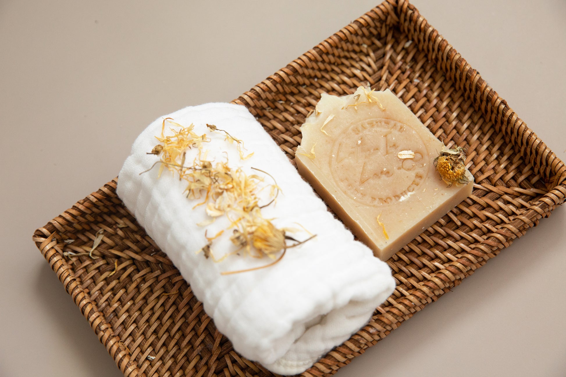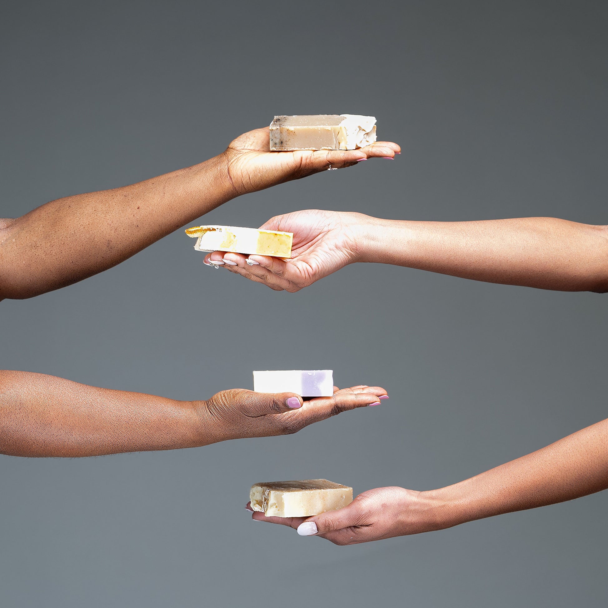 - Lather Up: Rub the soap bar between your hands or use a loofah or washcloth to create a rich lather. Our luxurious ingredients will produce a creamy foam.